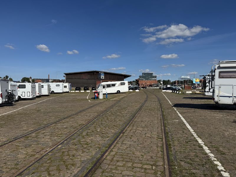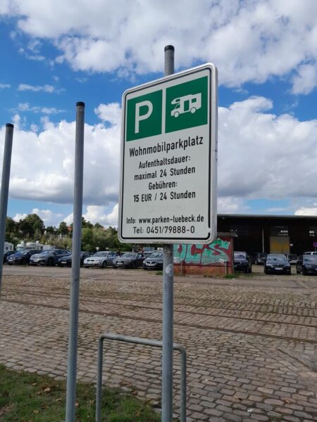 Danach geht es recht zügig nach Lübeck hinein, und auf den Wohnmobil-Stellplatz ohne V+E an den Media Docks (Gebühr EUR 15,00/24 Std.).