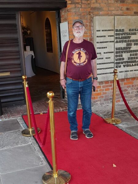 Irgendwann gehen wir dann doch zurück zum Gasthaus „Zur Ecke“ mit Dom-Blick. Dies ist eine von Italienern geführte Pizzeria, an der wir vorher schon vorbeigekommen sind. Hier und in dem benachbarten Restaurant herrscht noch immer Hochbetrieb. Die Festival-Besucher wollen sich noch für den langen Abend stärken. Heute wird „Walk the Line – die große Johnny Cash-Show“ aufgeführt. Wir dürfen uns aber bei einem netten Ehepaar mit an den Tisch setzen.