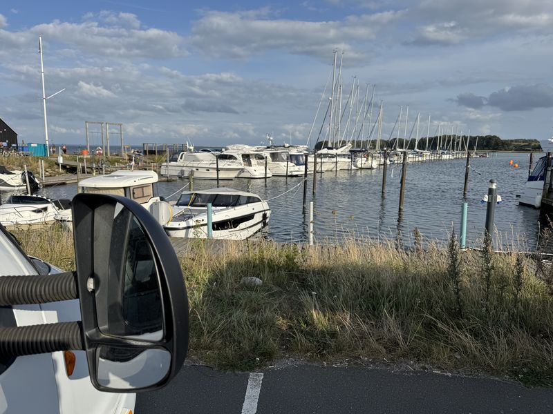 Zum Übernachten wollen wir noch irgendwohin an die Ostküste, wo man am offenen Meer steht. Wir entscheiden uns für den Stellplatz mit V+E (Gebühr DKK 210) im Hafen von Juelsminde. Es waren dann doch noch einige Kilometer bis dorthin.