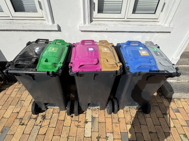 In der Straße, in der wir unser Wohnmobil stehen haben, sind mittlerweile die Mülleimer nach draußen gestellt worden. Solch eine zahlreiche Trennung haben wir bisher noch nicht gesehen.