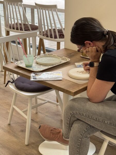 Wie in Dänemark, gibt es auch hier ein Café zur persönlichen Gestaltung des Geschirrs, was man mit nach Hause nehmen möchte.