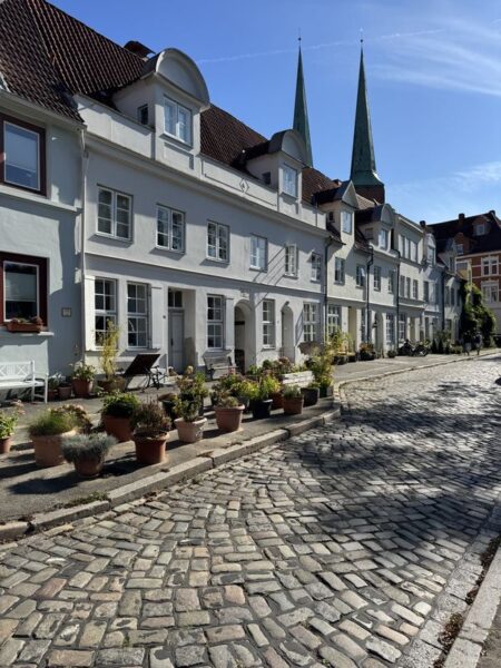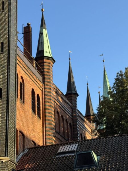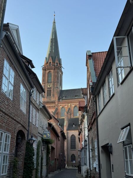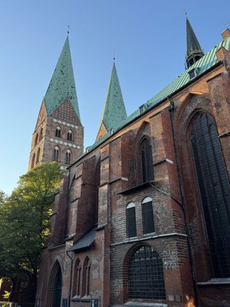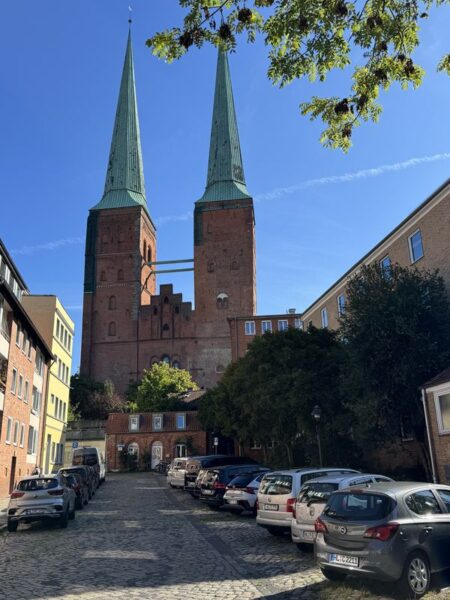 Hier lösen wir uns von der Obertrave und gehen hinauf in Richtung des Lübecker Doms, den wir zur Zeit aber nicht besuchen können, da eine Messe stattfindet.