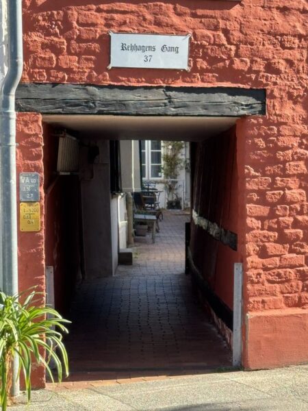 Jetzt können wir uns zu einer kleinen Ruhepause ins Wohnmobil zurück ziehen. Auf dem Weg dorthin bezahlen wir auch unsere Stellplatzgebühren. Dies wird nicht mehr im Fischhaus Loof gemacht, sondern einige Häuser weiter links davon an der Reception des Hotels „Altes Zollamt“.