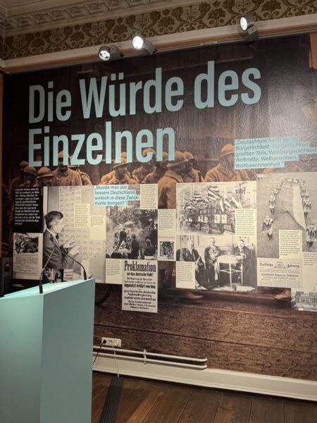 So gehen wir direkt weiter zum ehemaligen Augustinerinnenkloster „St. Annen“. Dort findet im Augenblick eine Ausstellung zur Entwicklung der Epoche nach dem Ersten Weltkrieg aus der Sicht von Thomas Mann statt. Inhalt und Meinungsbilder sind Zeitungen, Plakate, Briefe und Manuscripte aus der Zeit.