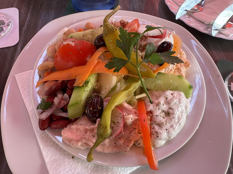 Auf dem Weg zurück kommen wir an einem griechischen Restaurant vorbei. Bei einer der Vorspeisen haben wir es geschafft noch ein Foto zu machen. Ab der zweiten Vorspeise haben wir uns nur noch auf das sehr gute Essen konzentriert und haben nicht mehr an die Bilder gedacht.