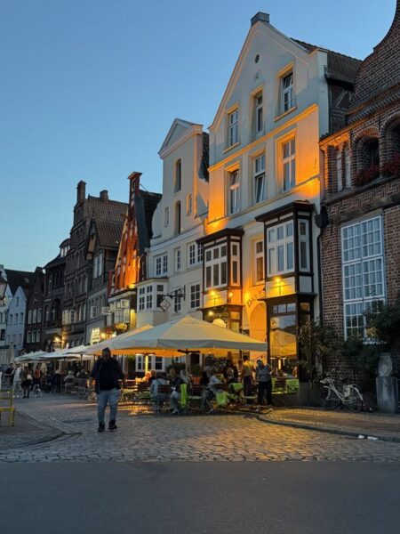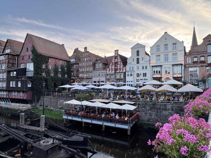 Uns zieht es auch an die Ilmenau, besonders aber in die Gegend um den Alten Kran im Lüneburger Hafen. Dies ist ein wahrer Hotspot mit Restaurants und Kneipen. Und besonders am Abend trifft man sich hier zum Essen in einem schönen Ambiente, oder zu Getränken in Geselligkeit.