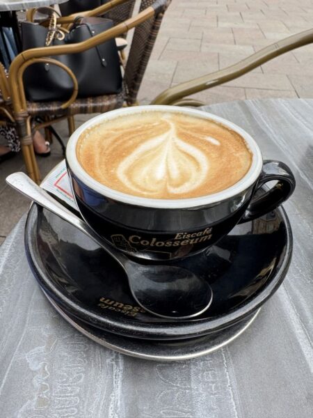 Am Markt machen wir eine Pause und genehmigen uns einen Cappucino.