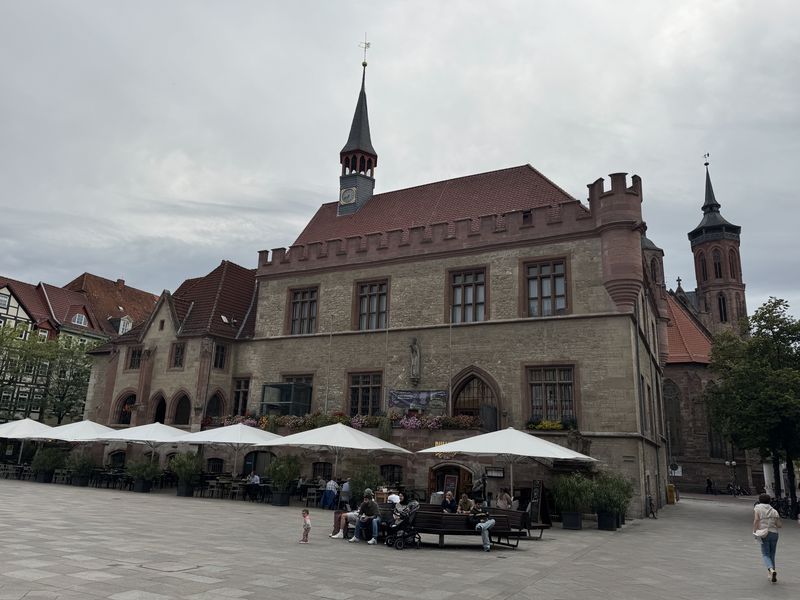 Die Sonne weckt uns schon früh, und ich mache mich auf die Suche nach einem Bäcker. Am Markt, gegenüber der Bartholomäuskirche, werde ich fündig.