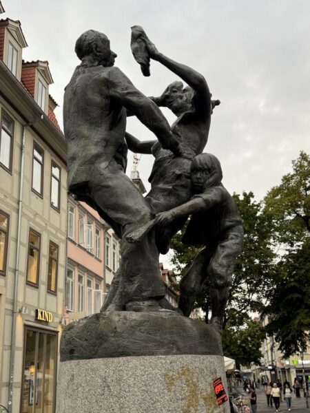 Direkt um die Ecke steht ein Denkmal für Georg Christoph Lichtenberg (1742 – 1799). Er war ein Allrounder in den Naturwissenschaften und ein Verfasser von Aphorismen („Sudelbücher“). Bis zu seinem Tod war er Professor an der Georg-August-Universität.
