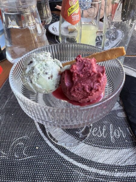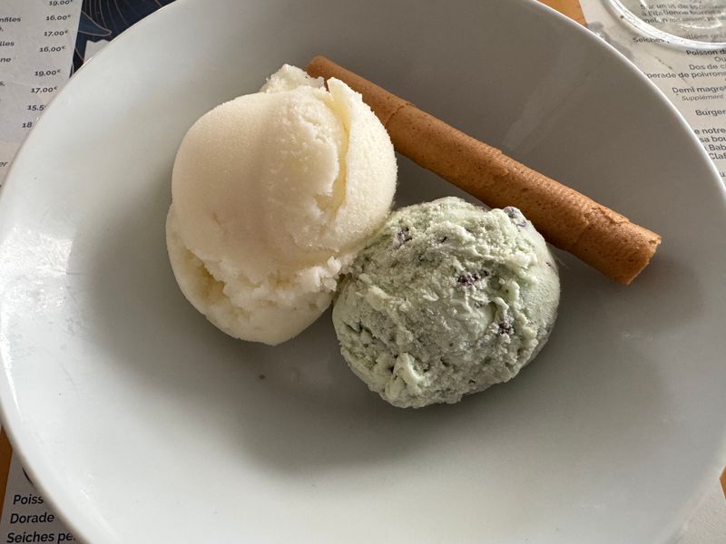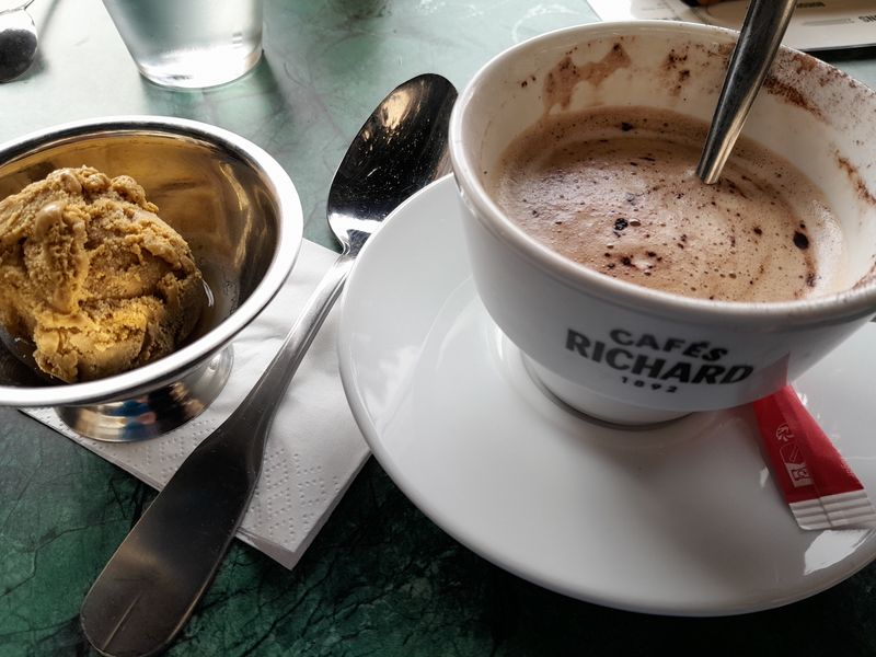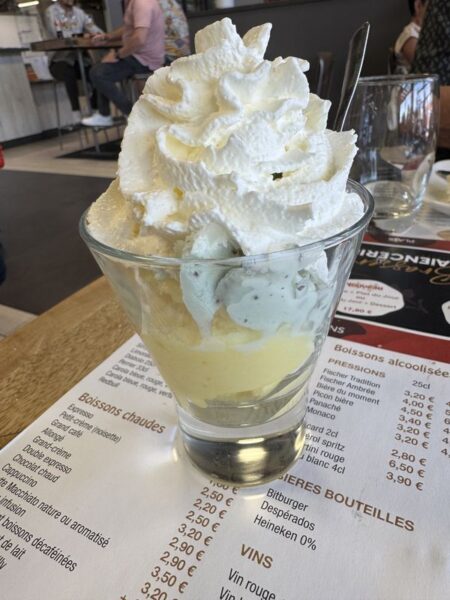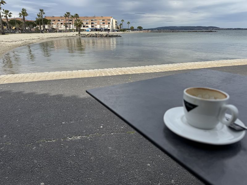 In einem offenen Café machen wir es uns bei Kaffee, Eis und Ricard ein wenig gemütlich.