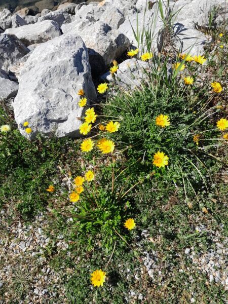 Bei der Weiterfahrt durchqueren wir auch eine Garrigueszone (Dies ist eine offene mediterrane Strauchheidenformation auf flachgründigen Böden, die in Südfrankreich oft vorkommt. Hier ist alles mögliche am blühen.