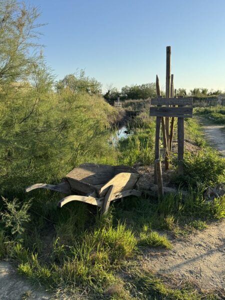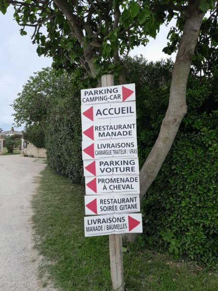 Wir sind total beeindruckt, und können bei der Weiterfahrt nur langsam wieder herunter kommen. Da passt es ganz gut , dass wir uns bei unserem heutigen Übernachtungsplatz ganz in den Schoß von Mutter Natur begeben. Mit den Infos von France Passion fahren wir zur Manade des Baumelles. Sie liegt nur noch wenige Kilometer von Les Stes. Maries de la Mer entfernt.