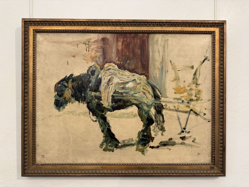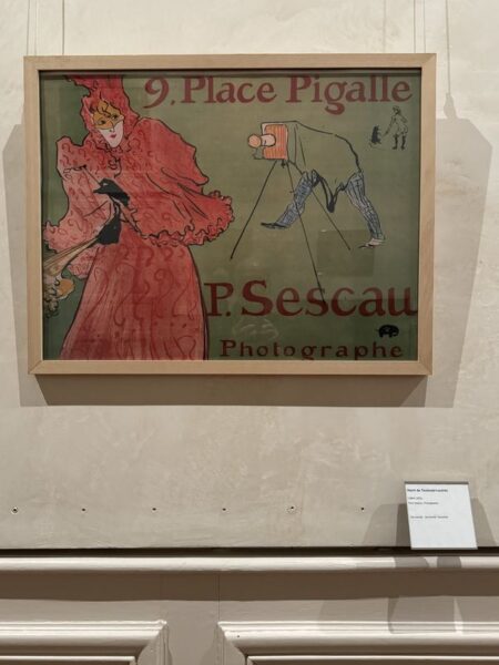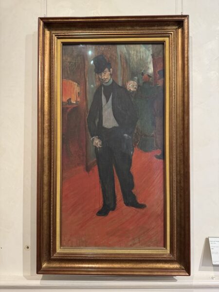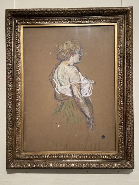 Wir haben Glück und kommen noch in die Ausstellung. Sie enthält zahlreiche Frühwerke, dann die Milieubilder aus seiner Pariserzeit im Künstlerviertel Montmartre, sowie seine Plakate für das „Moulin Rouge“. Insgesamt betrachtet zeigt sie sehr deutlich auf, welche beeindruckende Entwicklung T.-L. vollzogen hat, und wie tief er, auch beeinflußt durch seine Körperbehinderung, in die Lebensgemeinschaft in Montmartre aufgenommen worden ist.