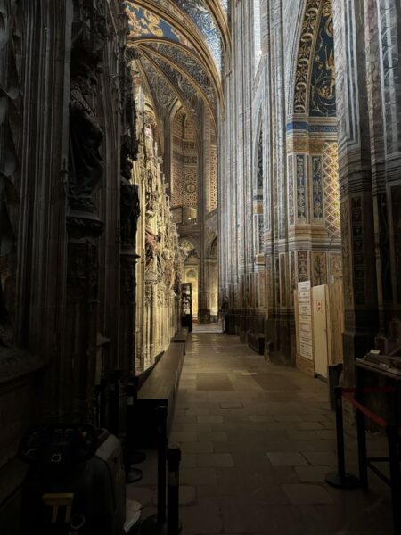 Die Cathédrale Sainte-Cécile (Baubeginn im 14. Jhdt.) gehört zu den größten Backsteinkirchen der Welt, und ist mit ihren teilweise bis zu sechs Meter dicken Wänden fast schon eine Festung bzw. Wehrkirche.