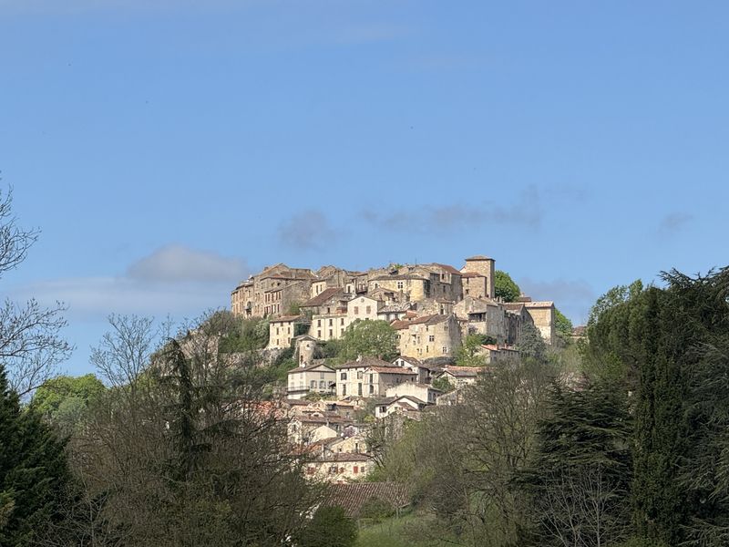 Da wir heute noch in den Katarerort Cordes-sur-Ciel wollen, gehen wir zurück zum Wohnmobil und fahren in die 25 km entfernte und in nordwestlicher Richtung von Albi liegende Gemeinde. Sie liegt weithin sichtbar auf der Kuppe eines Hügels und hat ihr mittelalterliches Aussehen bewahrt. Cordes (okzitanisch Còrdas) hat nicht ganz 900 Einwohner und gehört seit 2021 zu den schönsten Dörfern Frankreichs.