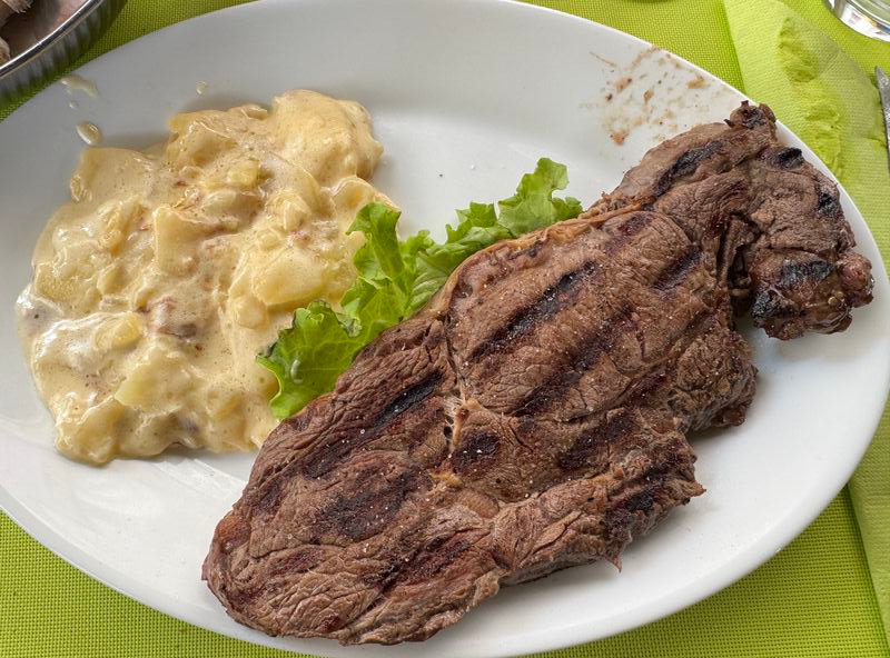 … und essen dort auch zu Mittag ein 2-Gänge-Menü.