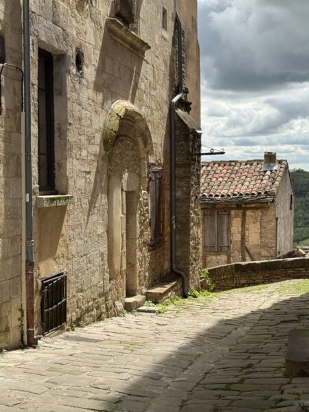 Der weitere Weg führt uns zu Fuß nur noch bergauf, dabei gehen wir zuerst ein Stück durch die Neustadt. Der mittlere Bereich dürfte im 14. bis 16. Jahrhundert erbaut worden sein. Das war auch die wirtschaftliche Blütezeit von Cordes mit seinen über 5.000 Einwohnern.