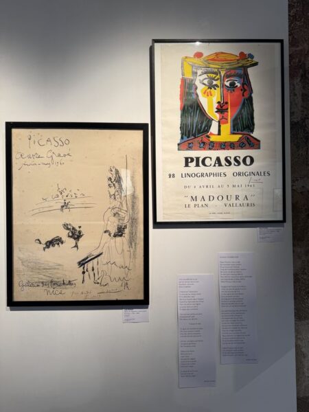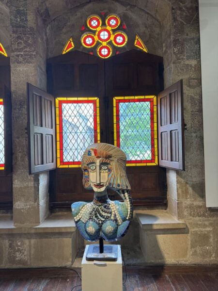 Gegenüber der Markthalle befindet sich das Musée d’Art Moderne et Contemporain in einem alten Gebäude mit einem unscheinbaren Eingang. Dort steht eine kleine Tafel mit einem Ausstellungshinweis für einen zeitgenössischen Künstler. Erst an der Information erfahren wir, dass es einen Saal mit Werken von Picasso und weiteren Künstlern seiner Zeit gibt. Da ist unsere Überraschung groß.