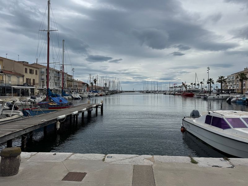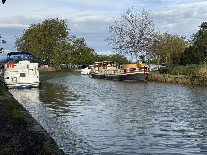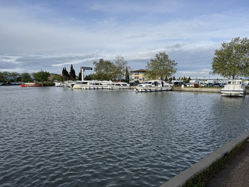 Homps am Canal du Midi empfängt uns auch mit „grau in grau“, der wohl zur Zeit gängigsten Farbe. Der CCP Wohnmobil-Stellplatz mit V+E (Gebühr EUR 15,18 inkl. Strom) ist gut frequentiert. Im Hafen ist ebenfalls Hochbetrieb, da die Boote für die Feiertage und den Beginn der Saison vorbereitet werden.