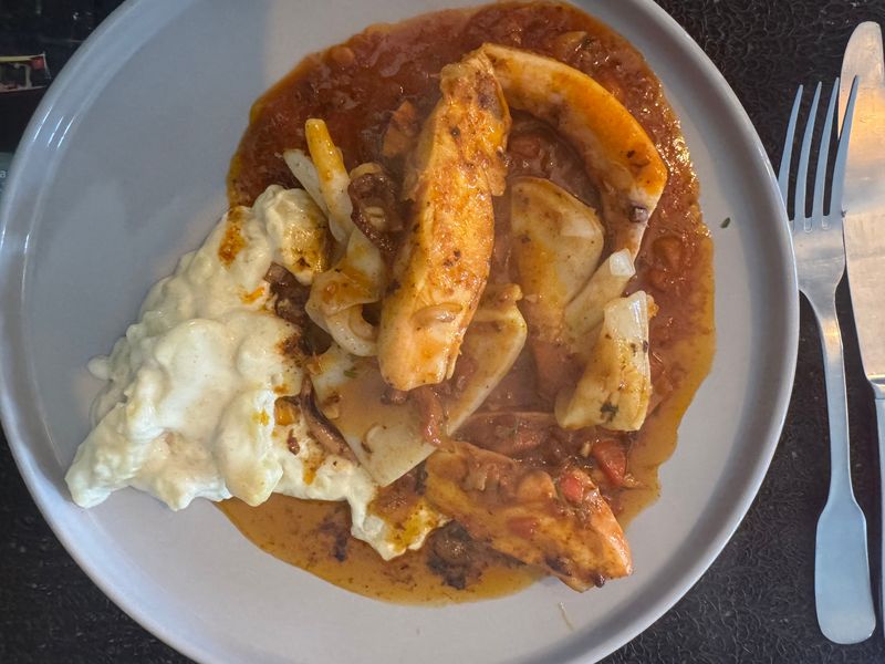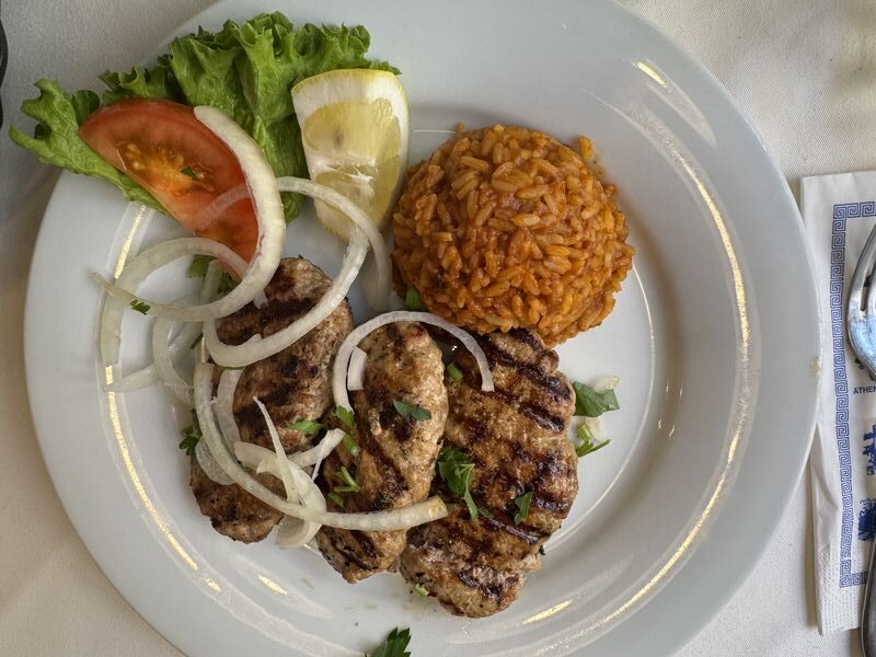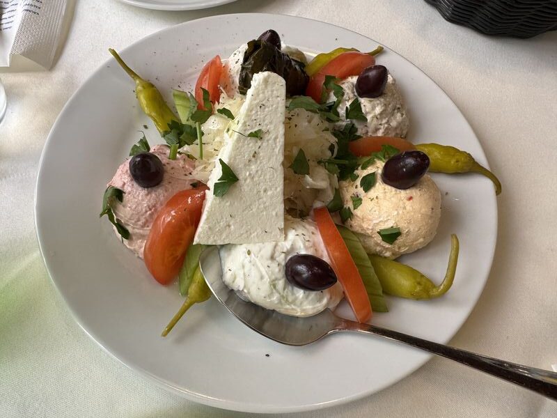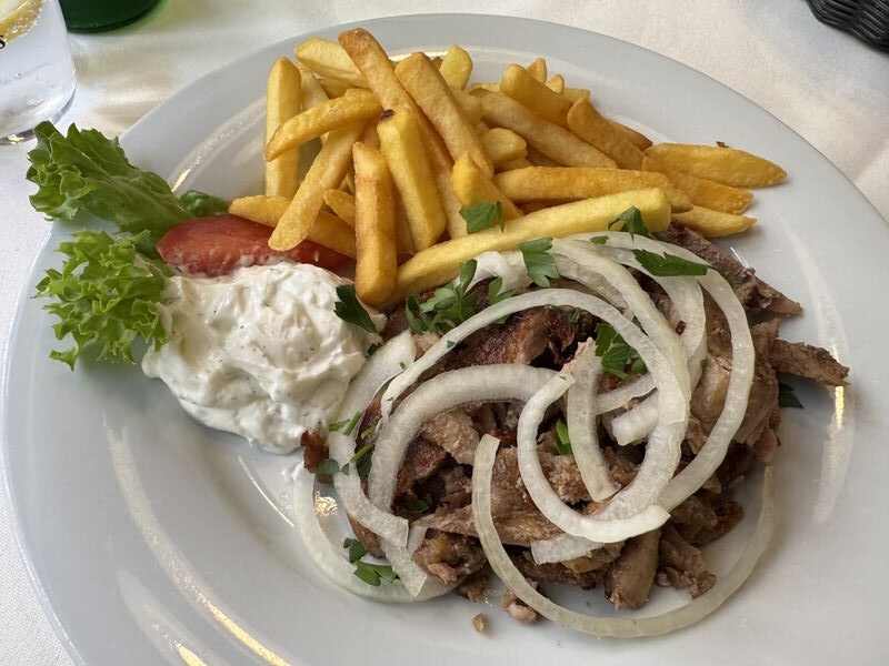 Weil wir kein Pfälzer Gasthaus finden, kehren wir zum Abschluß von unserem Besuch in Worms bei einem griechischen Restaurant ein. Das Essen sah schön aus, war aber insgesamt nicht ganz so frisch.