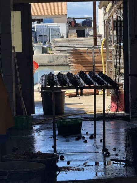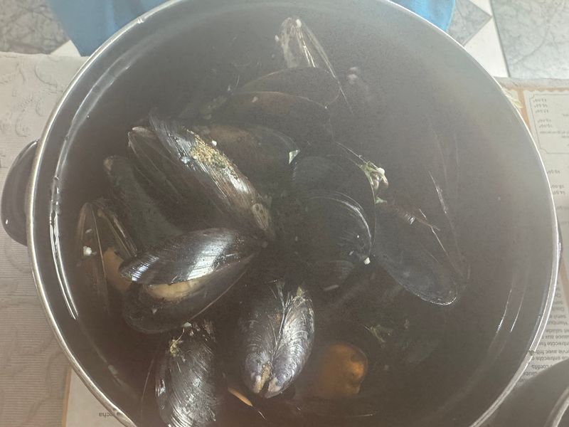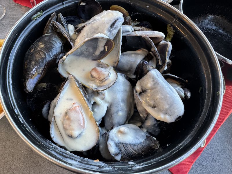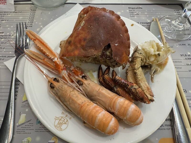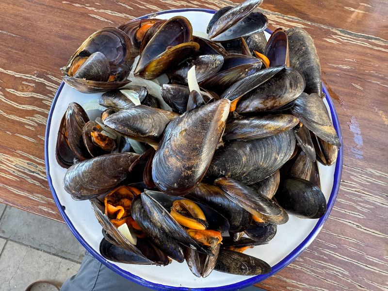 Irgendwann am frühen Abend setzen auch wir uns an einen Tisch und schauen mal, was der Fischfang oder die Muschelzucht uns zu bieten hat.