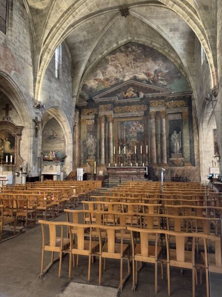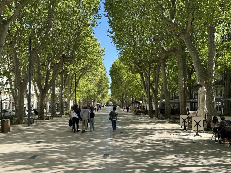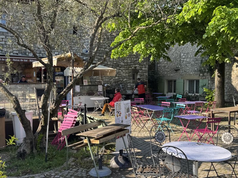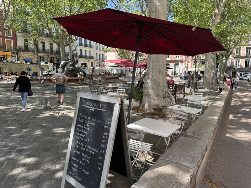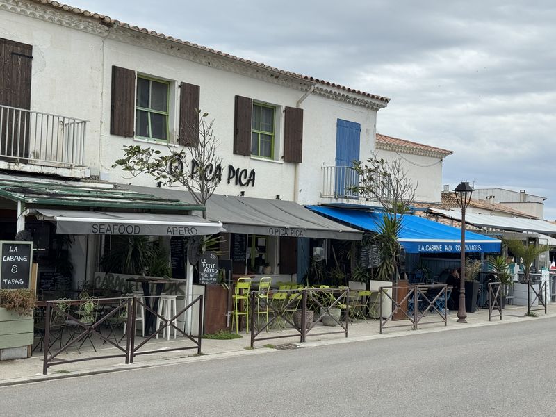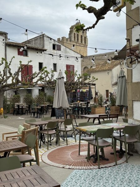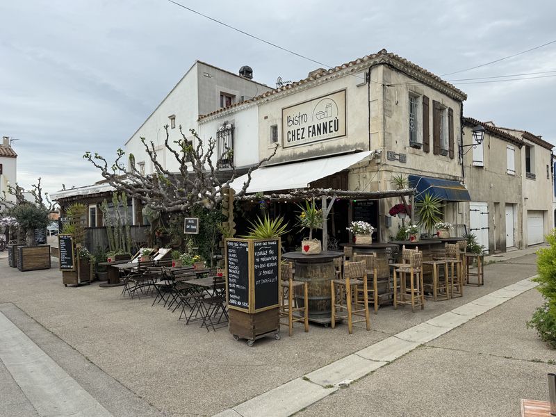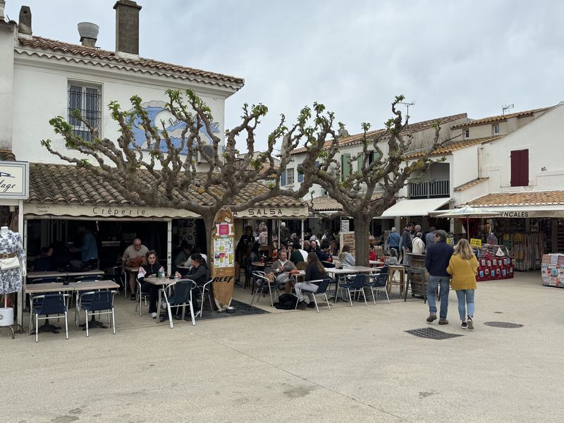 An den vielen kleinen Plätzen rund um die Kirche und in der Av. Fréderic Mistral befinden sich zahlreiche Bars, Cafés und Restaurants für die Verköstigung der Touristen.