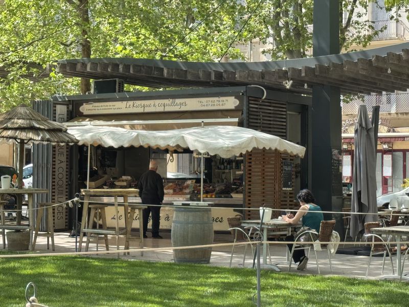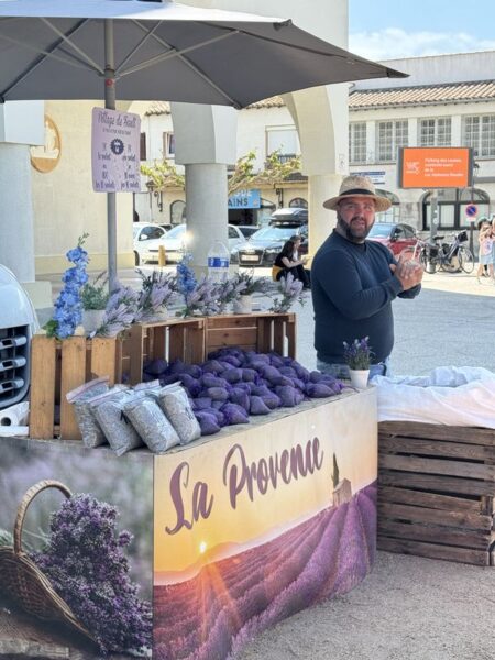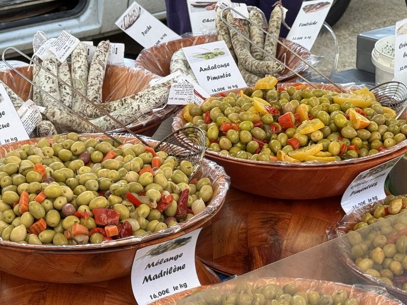 Eigentlich ist heute unsere Abreise vorgesehen. Durch den provencalischen Wochenmarkt verzögert sich aber alles um die Zeit unseres Ganges durch die vielen Marktstände. Es ist wie immer ein Erlebnis, obwohl wir die Reihenfolge der Stände fast im Schlaf aufsagen können. Nur der Stand mit den Austern ist nicht da. Der ist nur freitags bei dem Markt mit 120 Ständen anwesend.