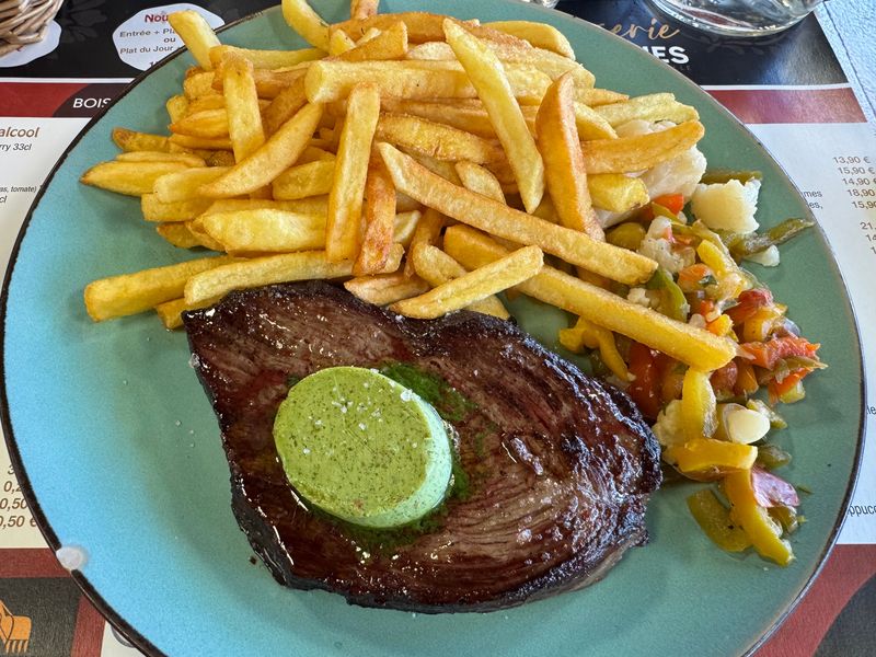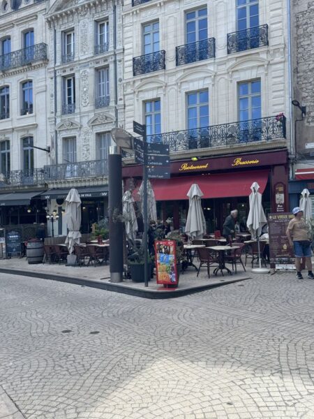 Auf dem kleinen Platz hinter der Kirche, im mittleren Bereich der Kleidergeschäfte, gab es früher ein kleines Café, das „Felipre“. Das war damals am frühen Morgen unsere erste Anlaufstation beim Baguettekauf. Bei einem Petit Café und nach dem Besuch der dortigen Toilette konnte der Tag beginnen.