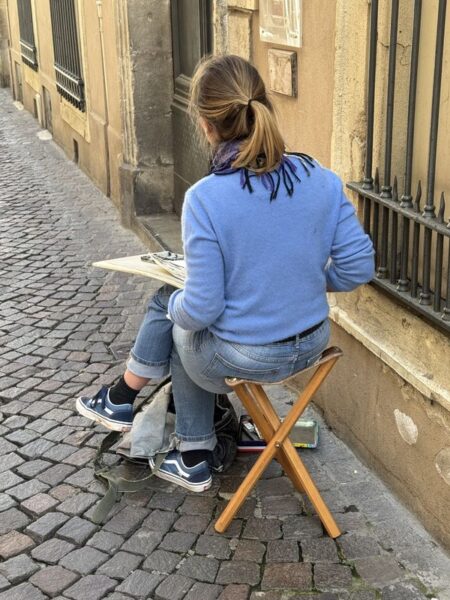 Ich habe es gerne, morgens alleine durch solch alte Gassen zu streifen, wenn das Leben so langsam erwacht. Dabei treffe ich schon mal Gleichgsinnte, die in Café’s sitzen.