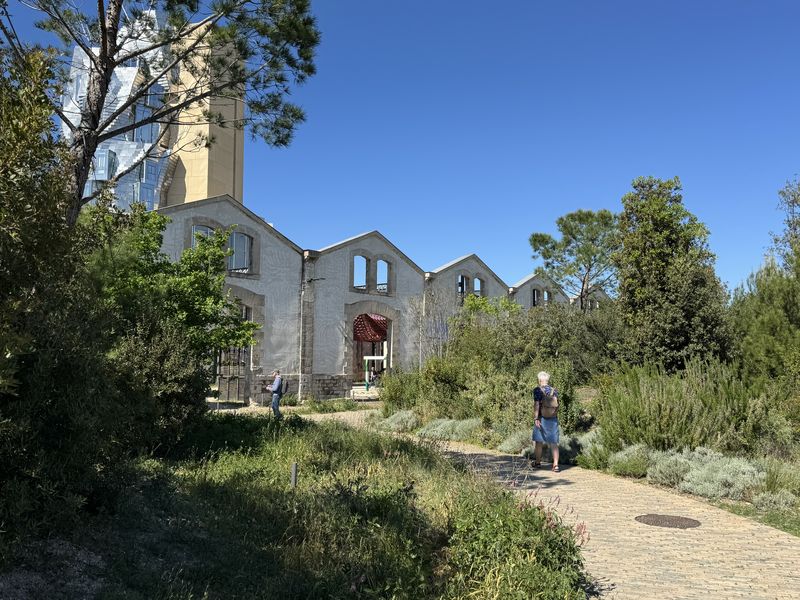 Da wir die Speisung des Körpers erledigt haben, wollen wir dies auch für die Sinne tuen. Also fahren wir zuerst mal nach Arles. Lena möchte unbedingt zum LUMA in Arles. Dies ist ein Kulturkomplex, der sich zur Aufgabe gemacht hat, daß Künstler in Zusammenarbeit neue Wege in ihrer Schaffenskraft erarbeiten können. Das LUMA soll eine Ideenschmiede für Kultur und Ökologie sein.