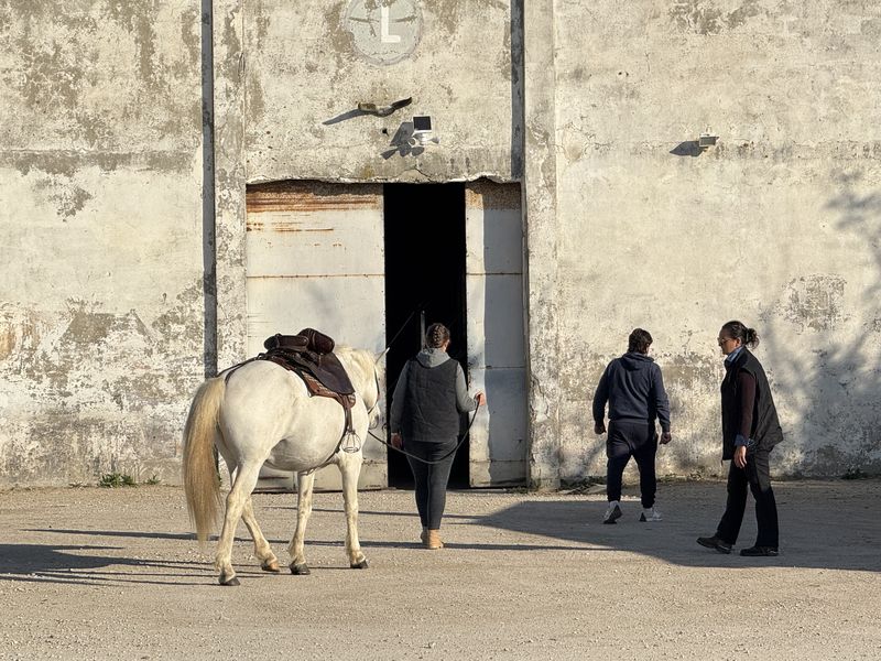 Auf der Manade hat die Arbeit auch schon ganz früh begonnen. Die Reiter kommen bereits von den Besuchen auf den Weiden wieder zurück.