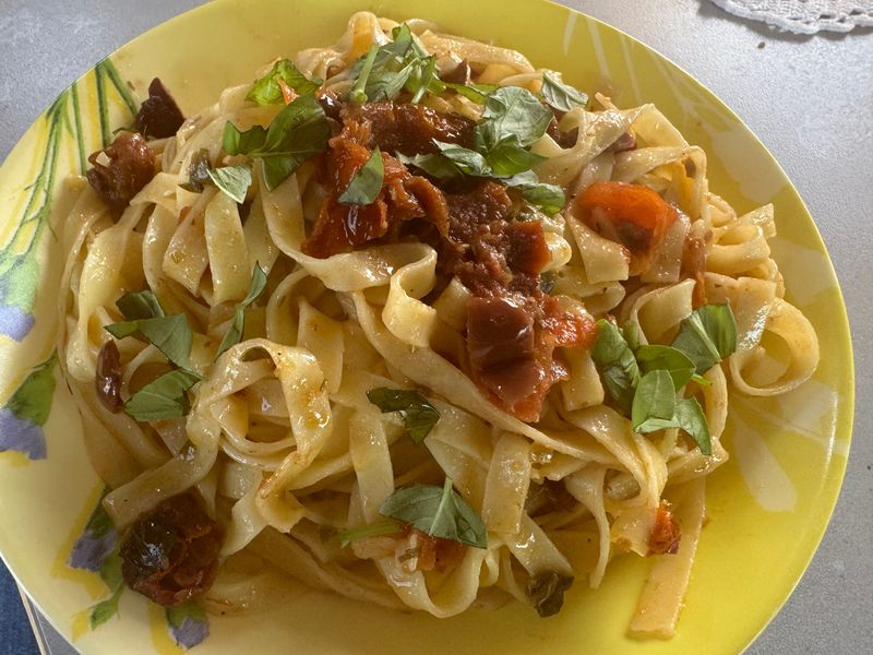Als Hauptgericht schieben wir Tagliatelle à la Pomodoro nach.