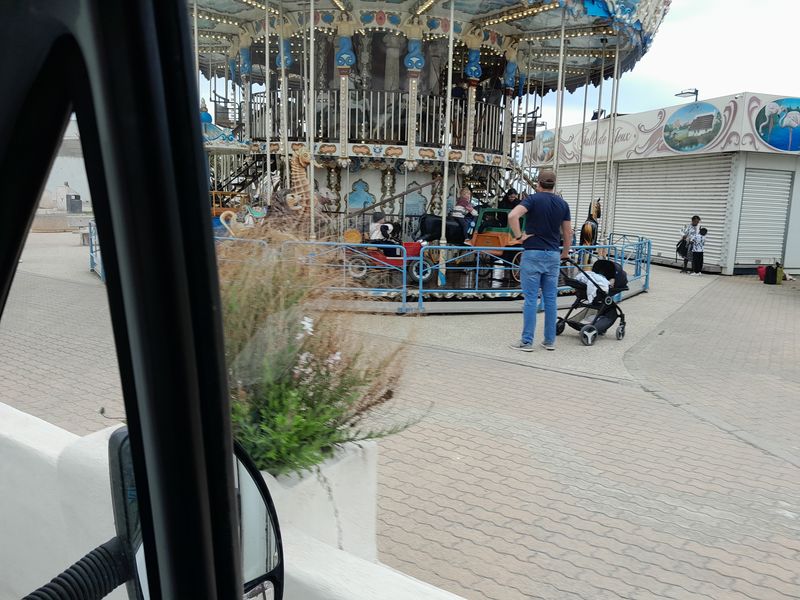Heute kommen wir von Westen in den Ort. Das Kinderkarussel an der Arena steht noch. Ansonsten ist auf den ersten Blick auch noch alles wie immer.