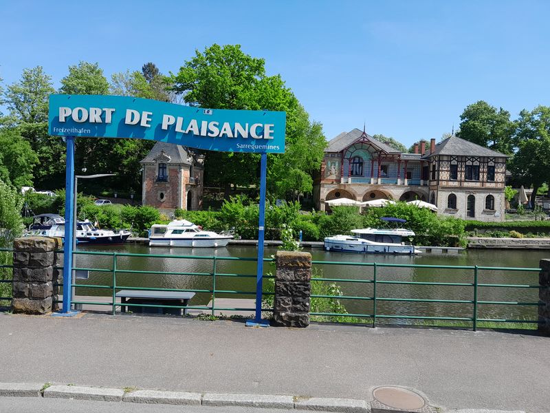 Um in das Zentrum von Sarreguemines zu kommen, ist es uns zu weit. Wir bleiben am Platz und faulenzen. Am Kanal und auf der Saar ist auch nichts los. Es ist aber auch viel zu heiß, um sich viel zu bewegen. Ab und zu kommen Radfahrer am Kanal entlang, und fahren vor uns vorbei.