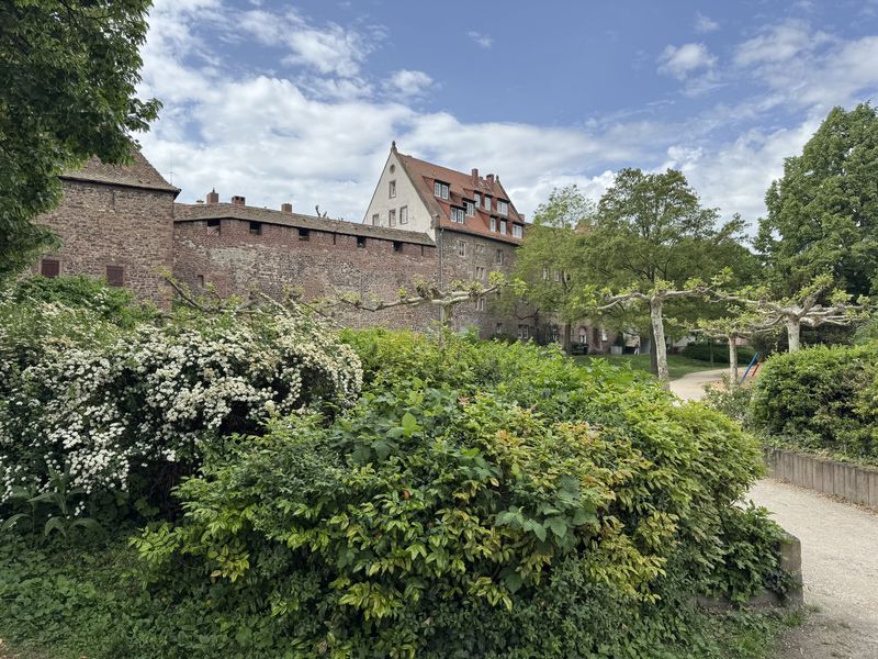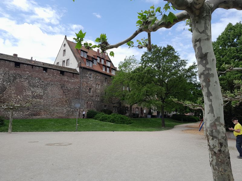 Dort rechts war einst die Martinspforte, durch die am 16.April 1521 Martin Luther mit Begleitung auf einem Pferdewagen nach Worms kam. Es war zu der Zeit ein Reichstag in Worms.