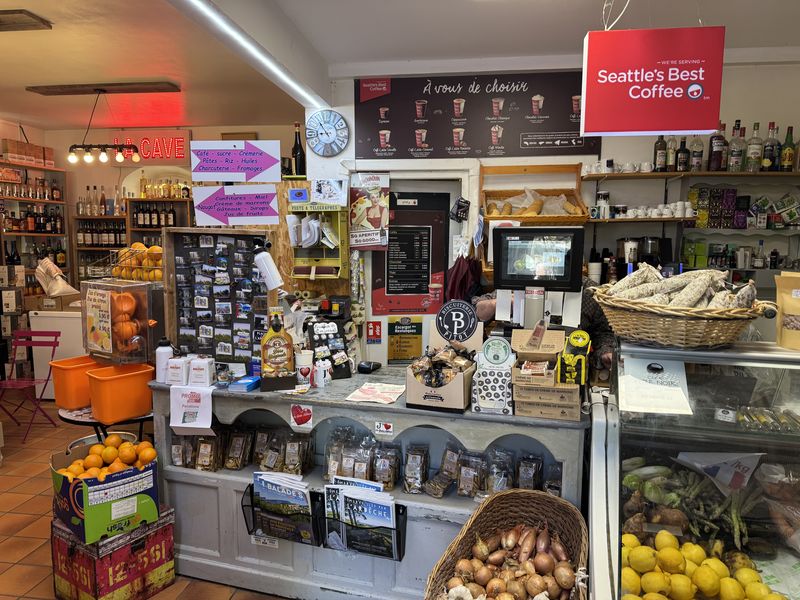 Wir bereiten unser Frühstück vor. Baguette und Croissants gibt es noch immer in der kleinen Alimentation, Bar, Tabac.