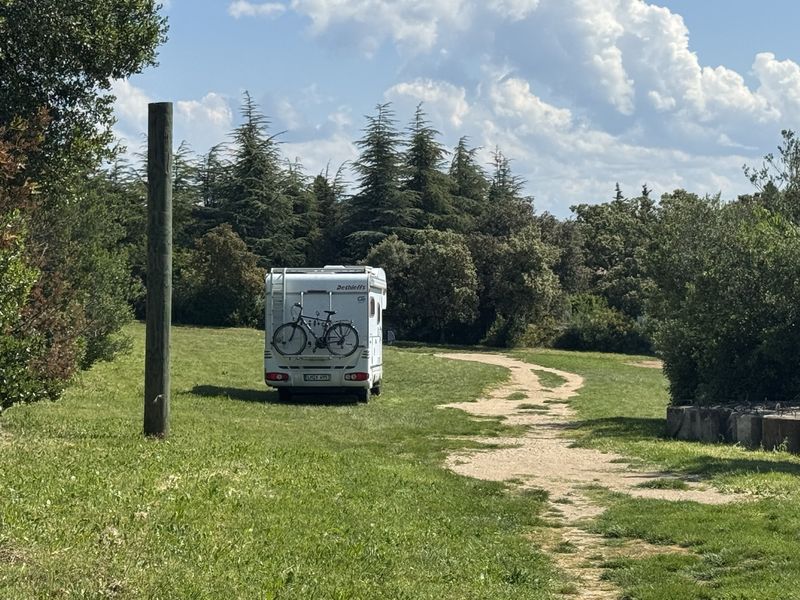 Nach 35 weiteren Kilometern biegen wir nach rechts ab und fahren nach LaGarde-Adhémar, das auf einem Hügel thront. Der kostenlose Wohnmobil-Stellplatz ohne V+E liegt unterhalb des kleinen Bd. des Montjars auf einem Wiesengelände.