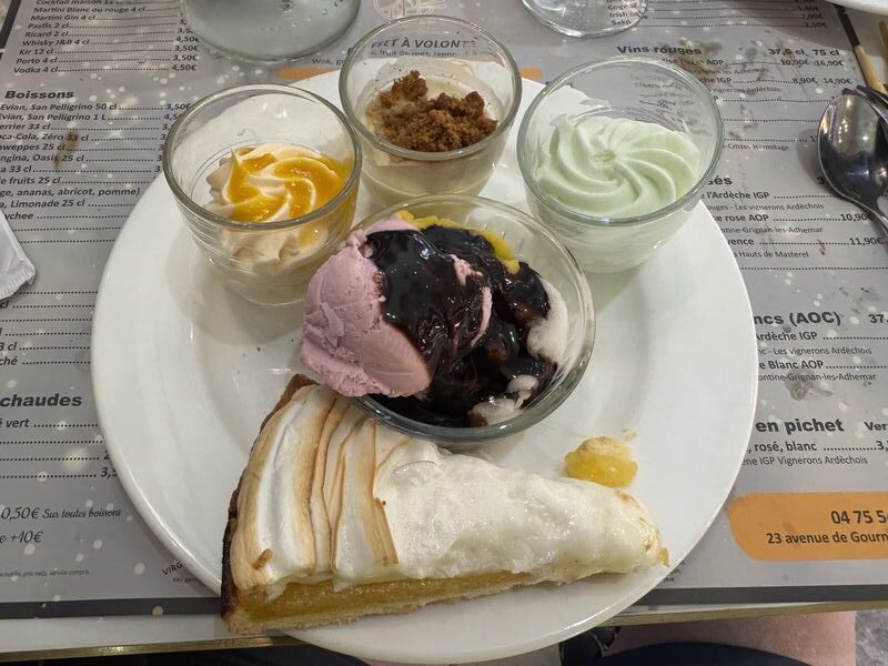 Unser Wohnmobil ruft zur Weiterfahrt. In Donzère fahren wir noch schnell zur Ver- und Entsorgungsstation. Danach machen wir aufgrund guter Zeitplanung unseren Mittagsstopp in Montélimar. Wir folgen der N7 bis zu dem Kreisel, wo die Nationalstraße nach links abbiegt. Dort befindet sich nach ca. 100 m im Industriegebiet auf der linken Seite das chinesische Restaurant „Le Bonheur d’Asie“ mit seinem superben Mittagsbuffet von montags bis freitags für EUR 15,90. Es gibt wirklich nichts vergleichsbares.