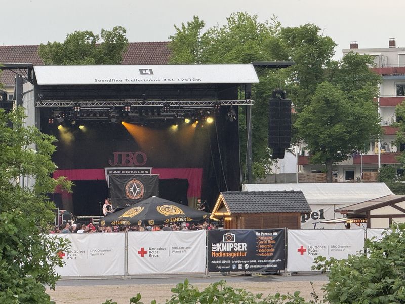 Man sollte bei der Stellplatzwahl wirklich auf alles achten. Unweit von uns ist auf dem Festplatz-Gelände eine Bühne aufgebaut. Schon beim Sound-Check merken wir, dass es laut wird. Und schon bald füllt sich die gesamte Umgebung mit PKWs mit jungen Leuten.