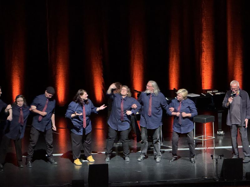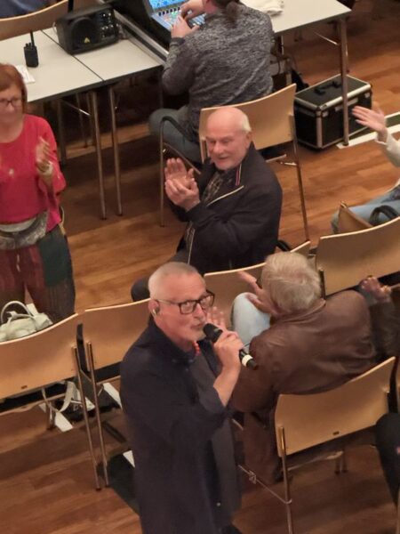 Mittendrin kommt der „inklusive Gebärdenchor LUKAS 14“ auf die Bühne und begleiten Konstantin Wecker bei einem Lied.